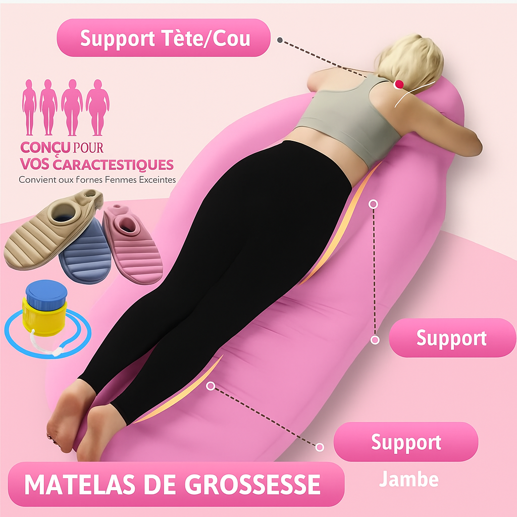 De nombreuses femmes enceintes souffrent du mal du dos et n'arrivent plus à dormir temporairement. Ce matelas unique, avec son ouverture centrale, vous permet de retrouver la liberté de dormir sur le ventre sans pression sur votre bébé ni inconfort pour vous.